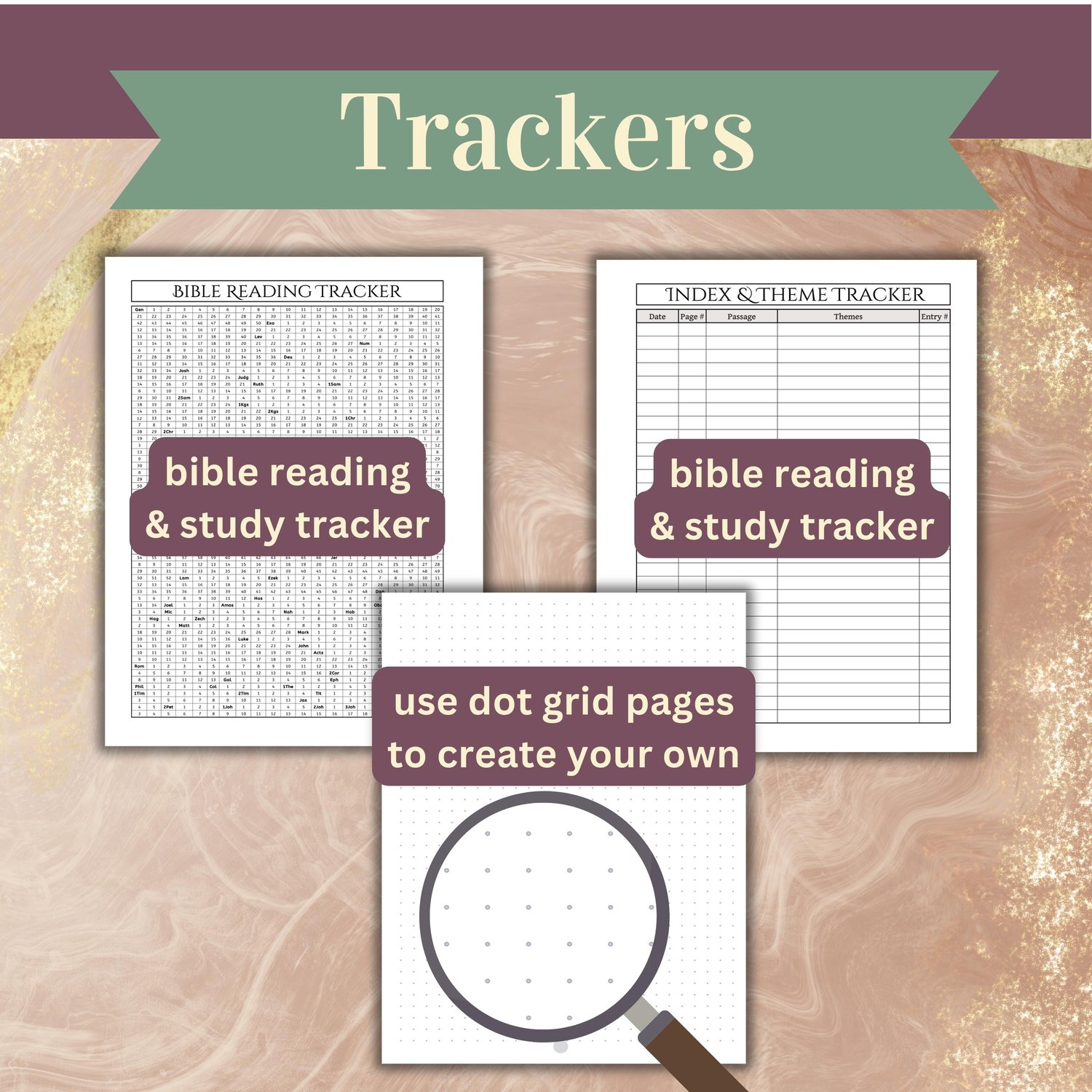 - Trackers to record themes the Holy Spirit is leading you to journal.