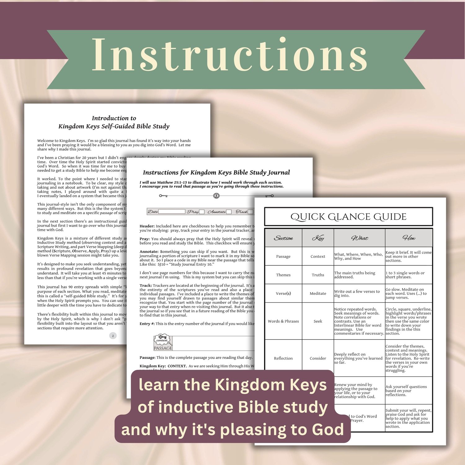 Kingdom Keys Self Guided Bible Study is a personal study journal that takes you through "key" elements of impactful Bible study. It allows for deep reflection and application for any portion of scripture you're reading. What portion of scripture you read is up to you. How you interact with that portion of scripture will determine if it's truly renewing your mind like the Bible instructs us. Kingdom Keys will guide your interactions so you don't forget important keys of effective Bible study.